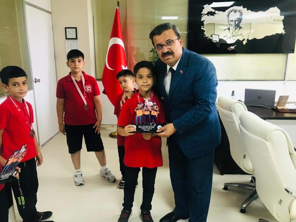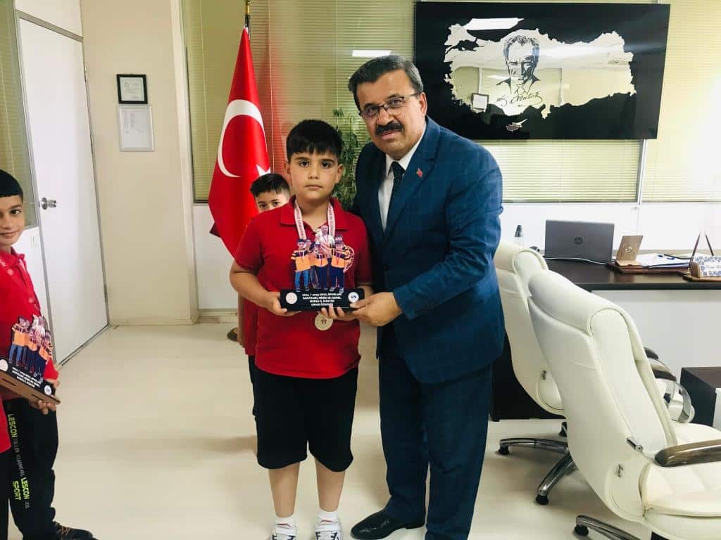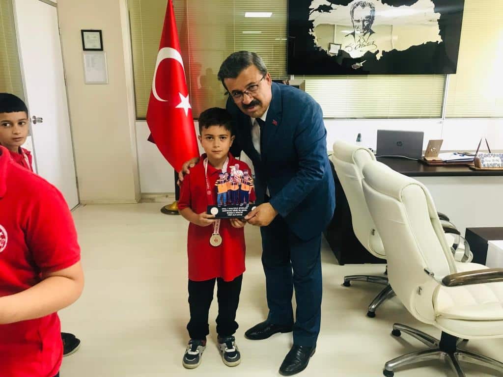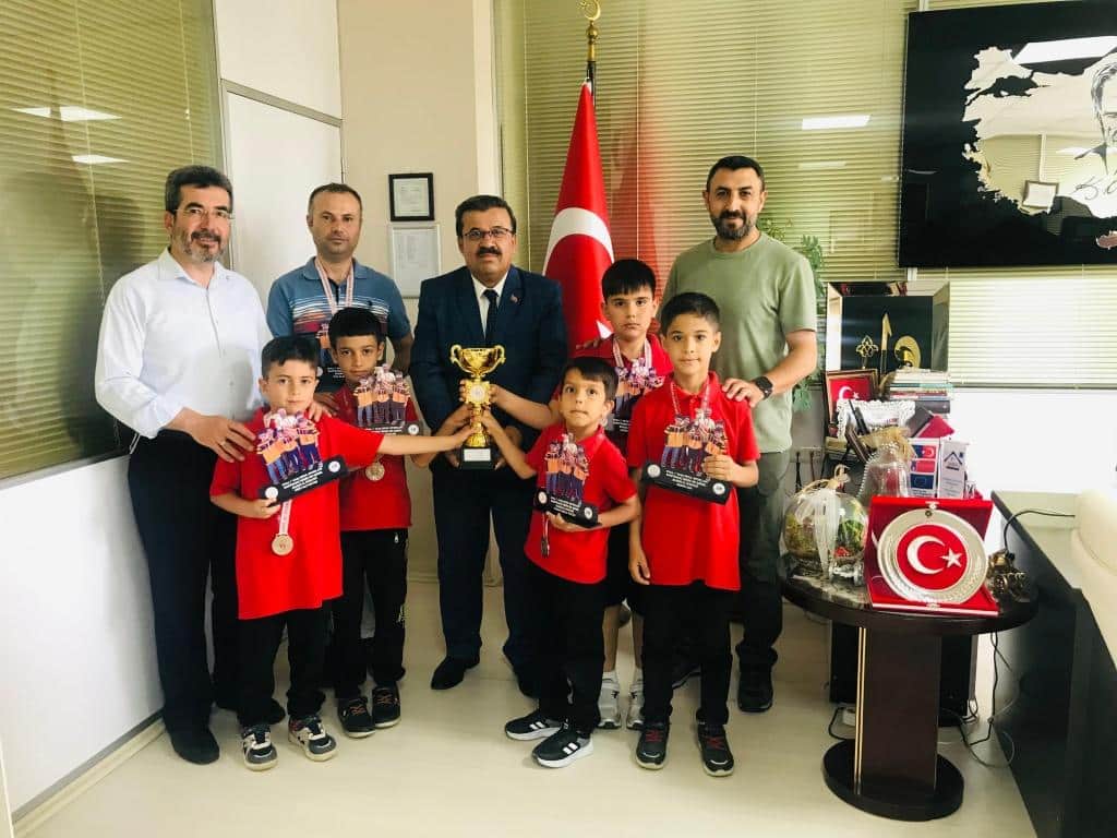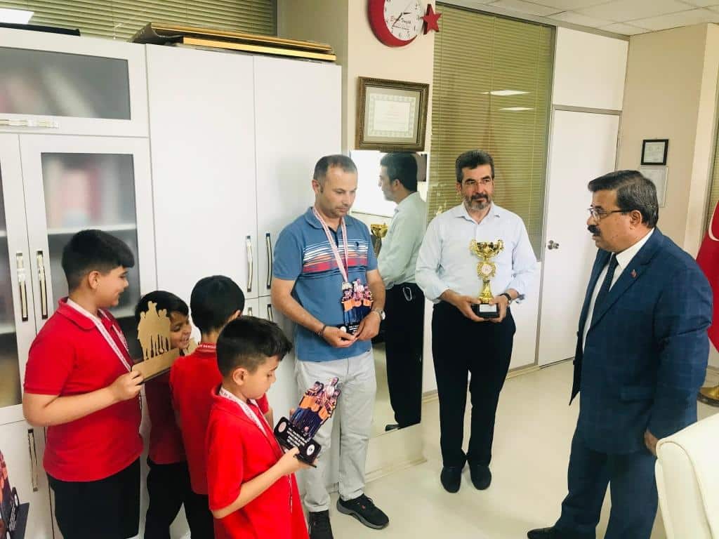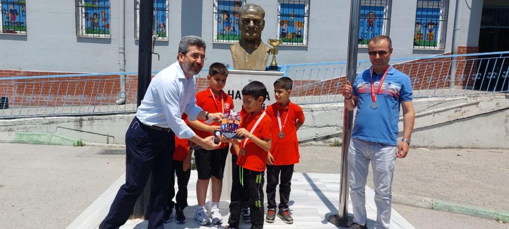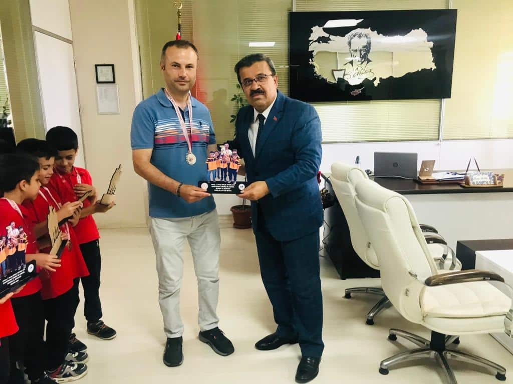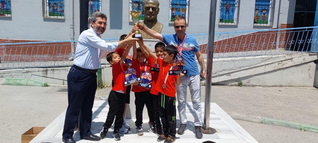 Bursa genelinde birçok okulun katılımıyla gerçekleşen yarışmadan kupayla dönen öğrencilerimizi ve onları büyük bir özveriyle yetiştiren öğretmenimiz Alaaddin BORA'yı Yıldırım İlçe Milli Eğitim Müdürümüz Sayın Mustafa SEVİNÇ tebrik edip ödüllendirdi.